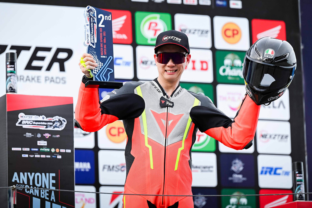 ด้าน “เบนซ์ เรซซิ่ง” อริย์ธัช วรโรจน์เจริญเดช นักบิดคนดังจาก เรปโซล อาร์-ซีรีส์ ทีม ที่ลงแข่งในรุ่น SB2 ยังคงสร้างผลงานยอดเยี่ยมเช่นเคย บิดเข้าป้ายในอันดับ 8 เพียงพอให้ขึ้นโพเดียมอันดับ 2 ได้สำเร็จ และนับเป็นการฉลองโพเดียม 2 สนามติดต่อกัน