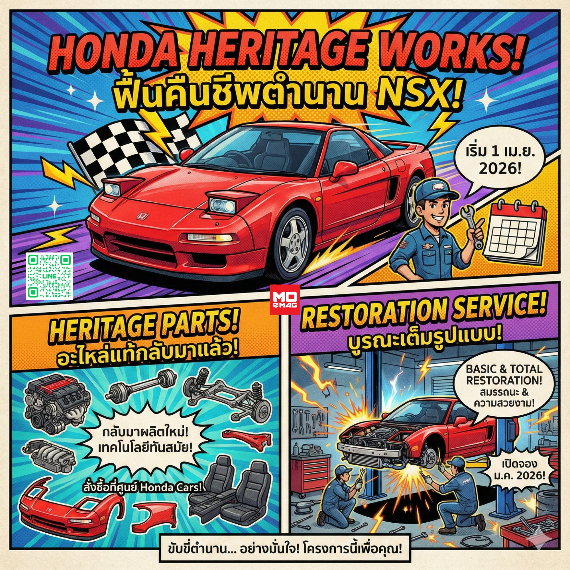 B. Honda Restoration Service (บริการชุบชีวิตรถ) อัปเกรดจาก "NSX Refresh Plan" สู่ศูนย์บริการใหม่ในชื่อ "Honda Heritage Works"