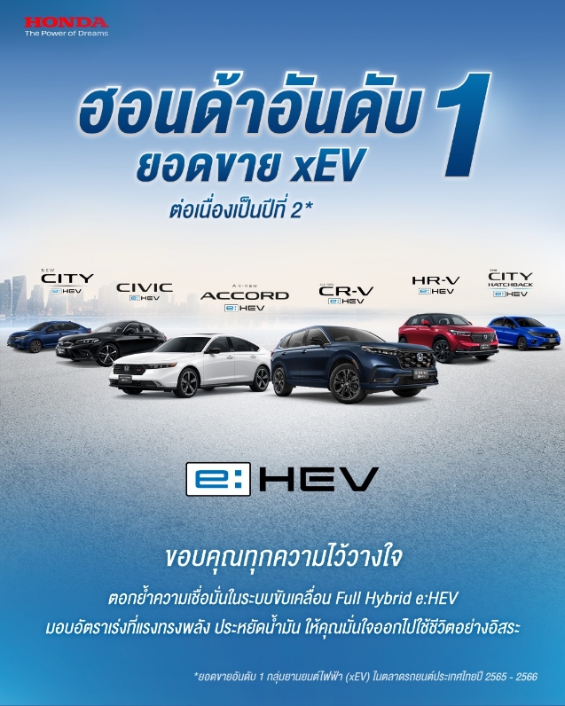 ฮอนด้า ครองตำแหน่งอันดับ 1 ยอดขายกลุ่ม xEV ต่อเนื่องเป็นปีที่ 2 ตอกย้ำความเ...