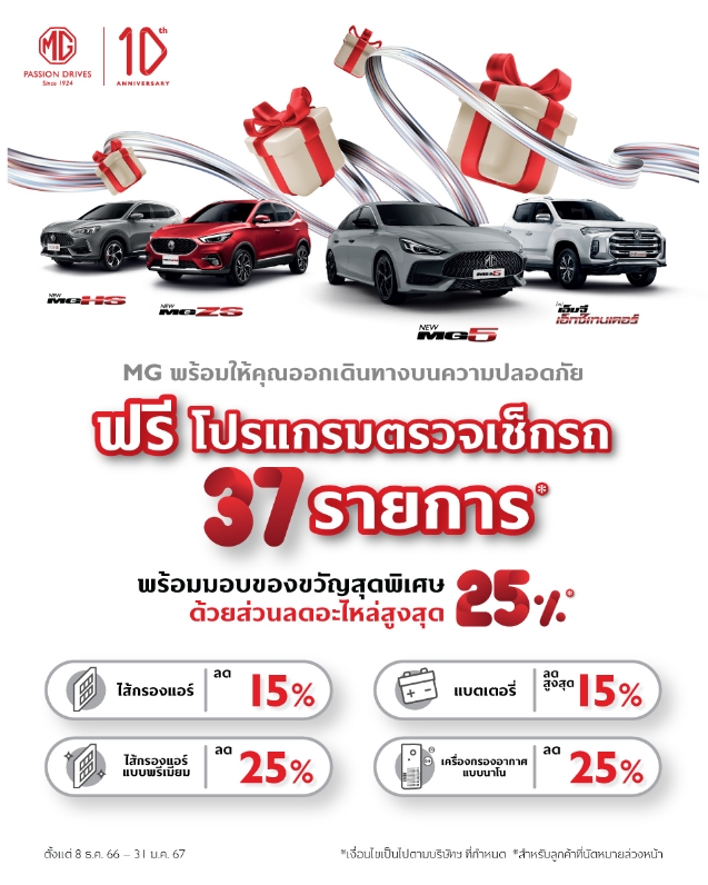 อ่านต่อเอ็มจี ร่วมรณรงค์ขับขี่ปลอดภัยช่วงปีใหม่ ปล่อยแคมเปญตรวจเช็กรถฟรีก่อนเดินทา...