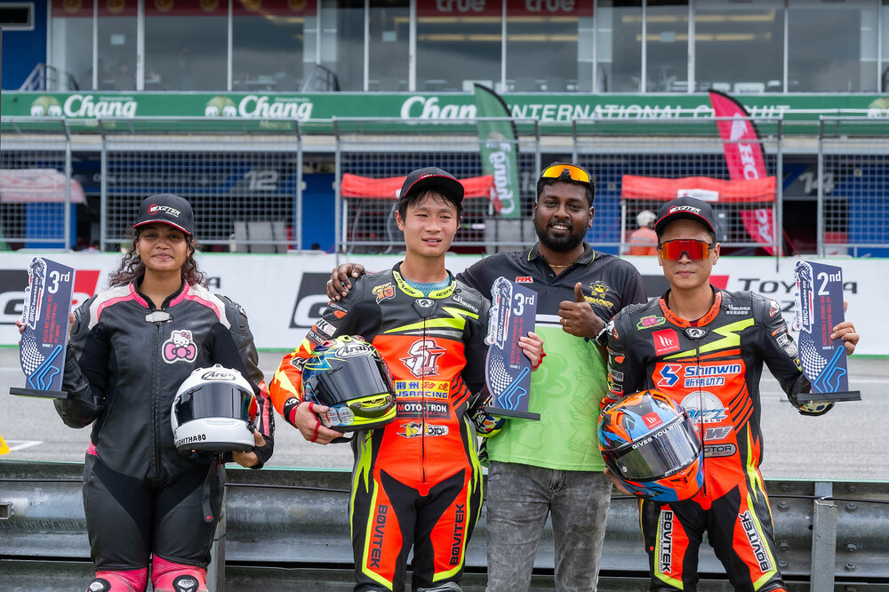 ขณะที่ นักแสดงหนุ่ม โอม-ภวัต จิตต์สว่างดี จาก ยามาฮ่า ทีเอ็นพี พีทีที ลูบริแคนท์ส ได้อันดับ 7 รุ่น ซูเปอร์สต็อก 1,000 ซีซี (ST3)