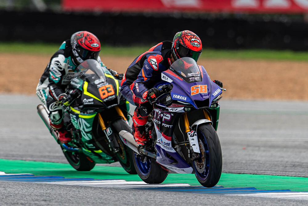 เกมในรุ่นใหญ่อย่าง ซูเปอร์ไบค์ 1,000 ซีซี (SB1 Pro) ซึ่งเป็นไฮไลต์ของสุดสัปดาห์นี้ ยังคงเข้มข้นสุดๆ โดยตำแหน่งโพลสนามนี้เป็นของ "แสตมป์" อภิวัฒน์ วงศ์ธนานนท์ จอมเก๋าจาก อีสต์ เอ็นเจที เรซซิ่ง ทีม ขนาบข้างด้วย "ซุป" อนุชา นาคเจริญศรี จาก โปร ฮอนด้า บริดจสโตน อันเดรียนี เบนดิกซ์ เอเอ็น เรซซิ่ง ทีม และ "บอล" จักรกฤษณ์ แสวงสวาท จาก ไบค์สตอรี พีทีที ลูบริแคนท์ส ยามาฮ่า เรซซิ่ง ทีม ในแถวหน้า ขณะที่ "มิกซ์" ธนัช ละอองปลิว นักบิดดาวรุ่งจาก อิเดมิตสึ ฮอนด้า ทีม คริสมาส ออกตัวจากแถว 2